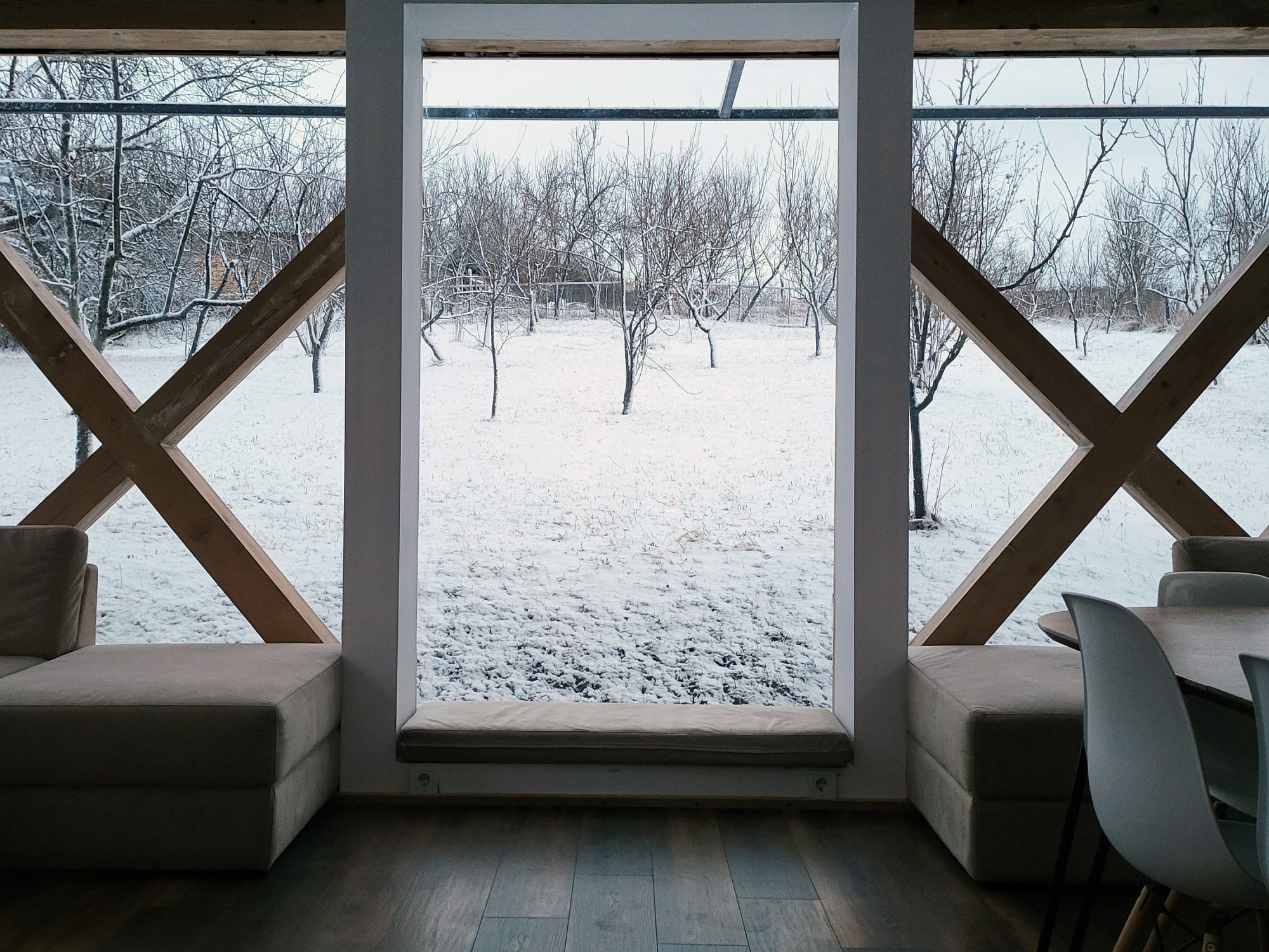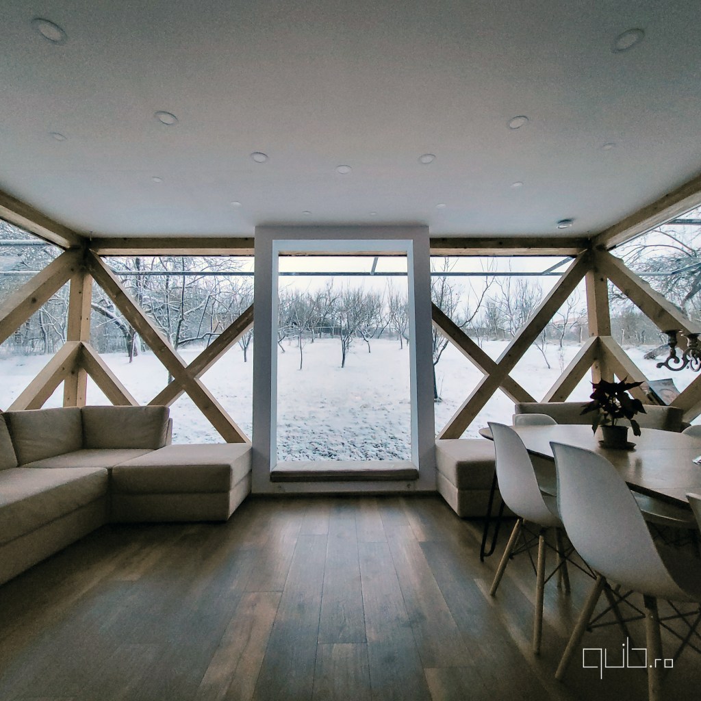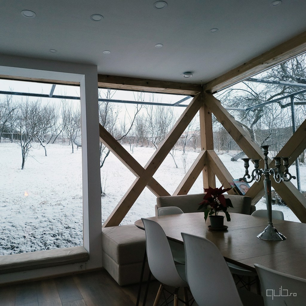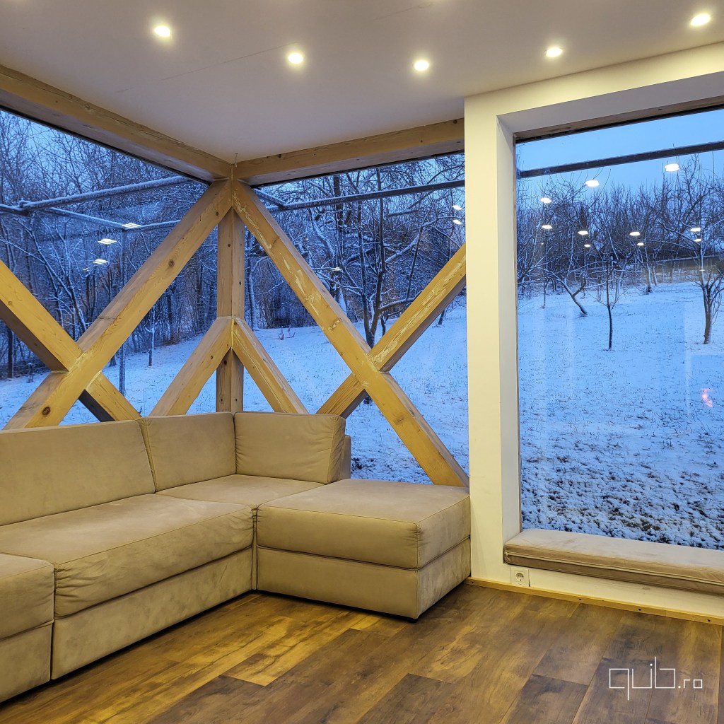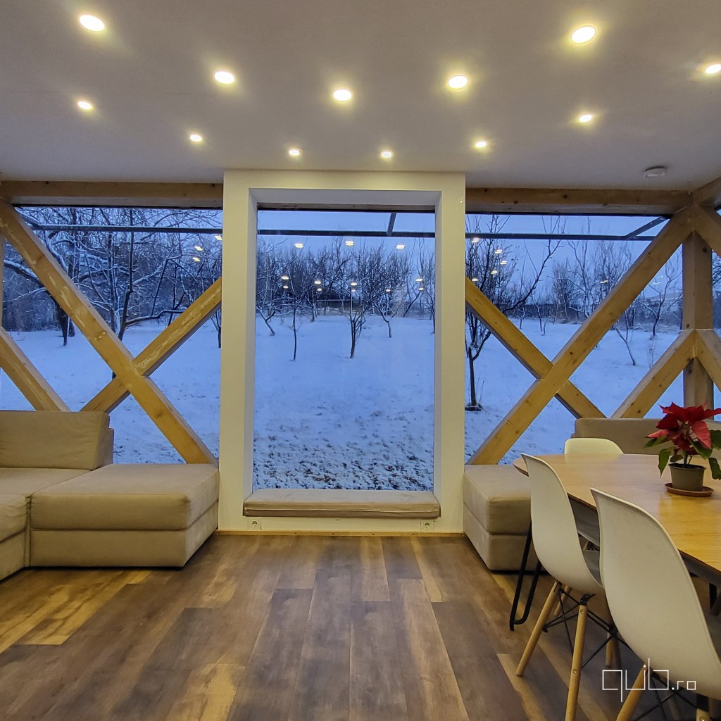 Iarna aduce o liniște cristalină, lumina rece a dimineții dansând în jurul tău. Primăvara izbucnește în tonuri de verde crud, iar fiecare geam devine o fereastră către renaștere. Vara pătrunde înăuntru cu miros de pajiști calde și seri scăldate în apusuri infinite. Toamna picură culori calde și sunetul ploii pe sticlă, transformând fiecare zi într-o poezie.